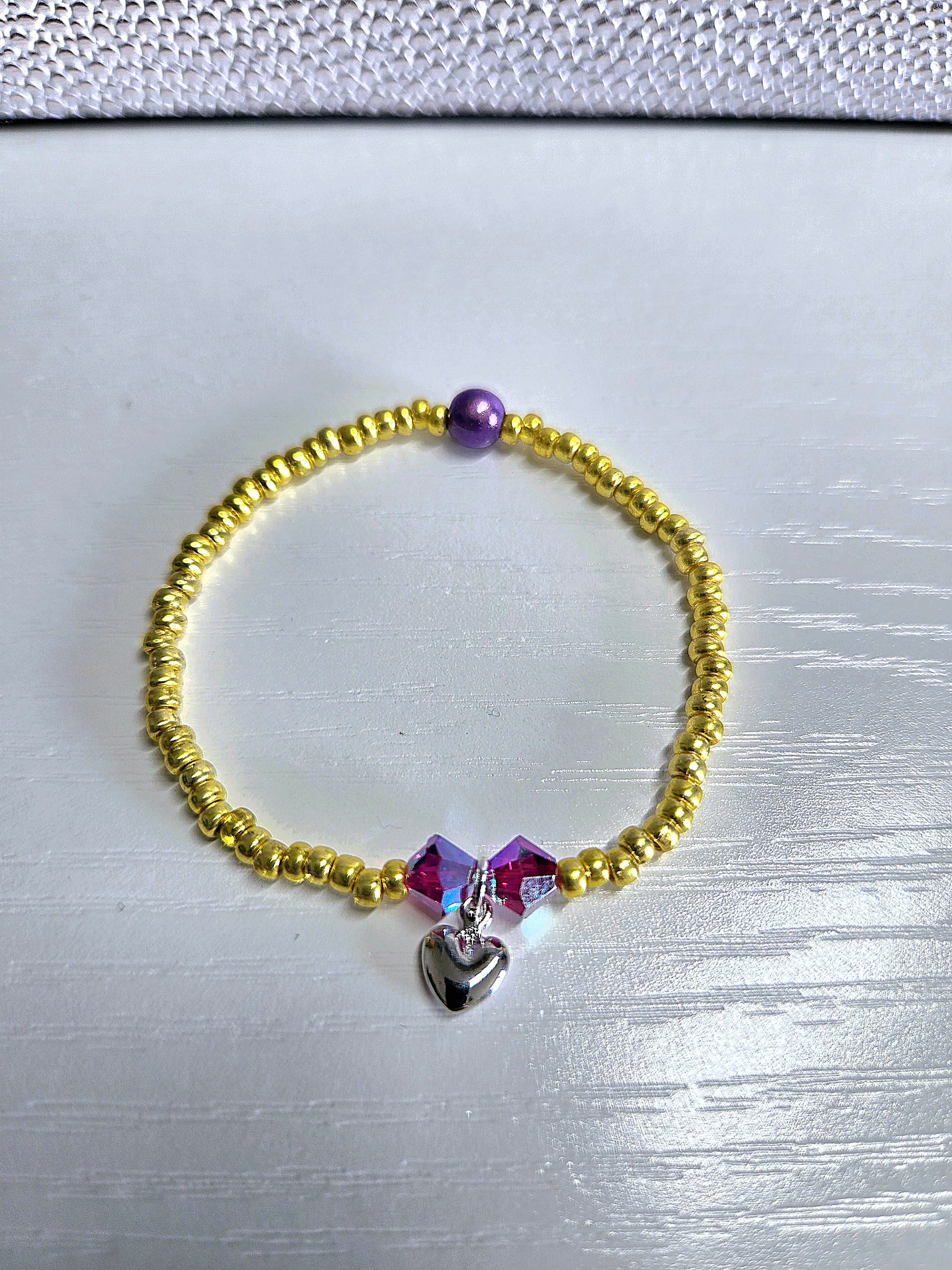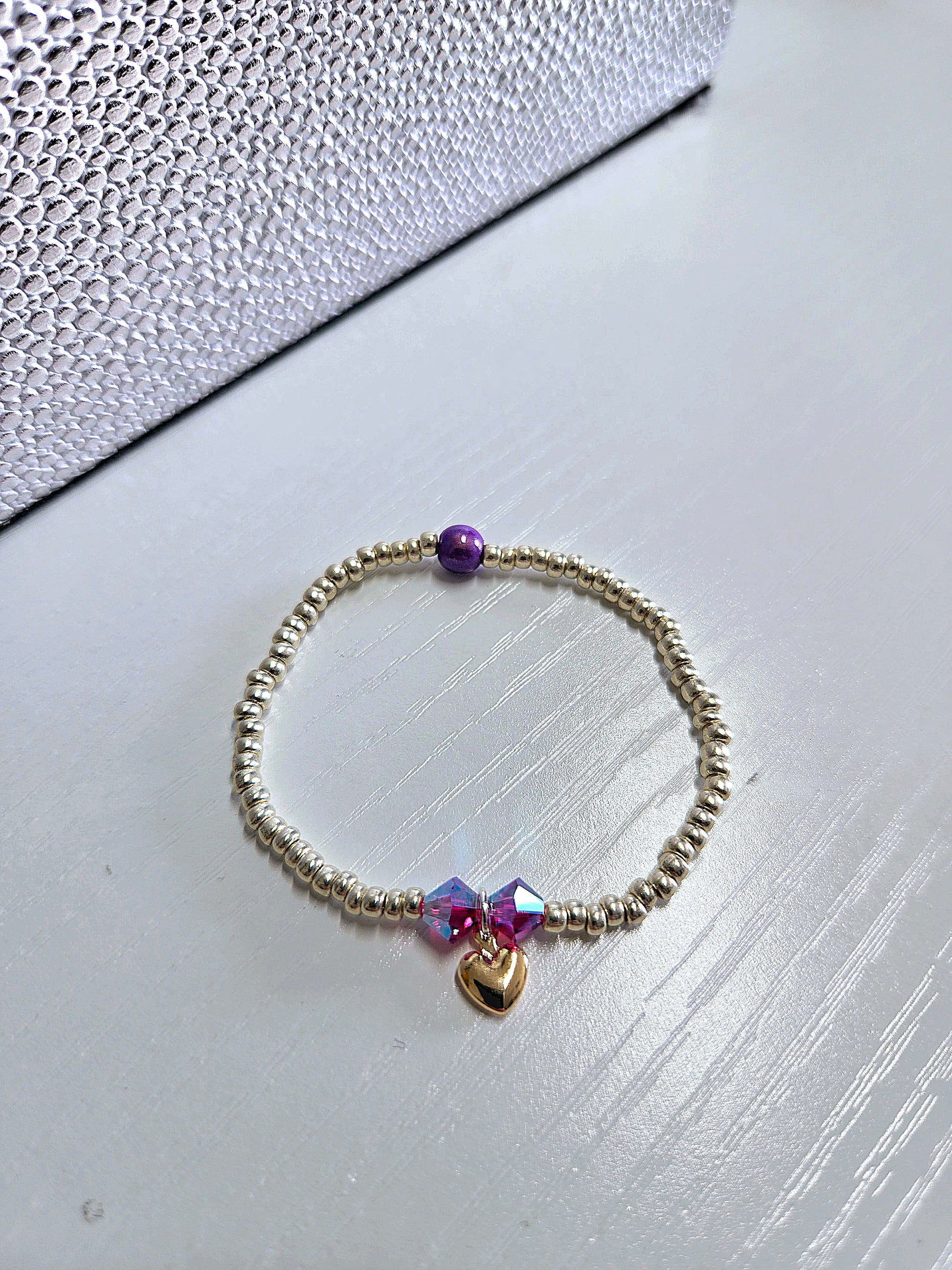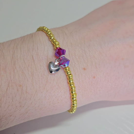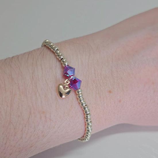 Hand made to order this super sparkly Stretchy Bracelet is made with 3mm Preciosa Crystal Seed Beads, 2 Preciosa Crystals & is finished off with a Metal Heart Charm giving it a bespoke luxury finish.