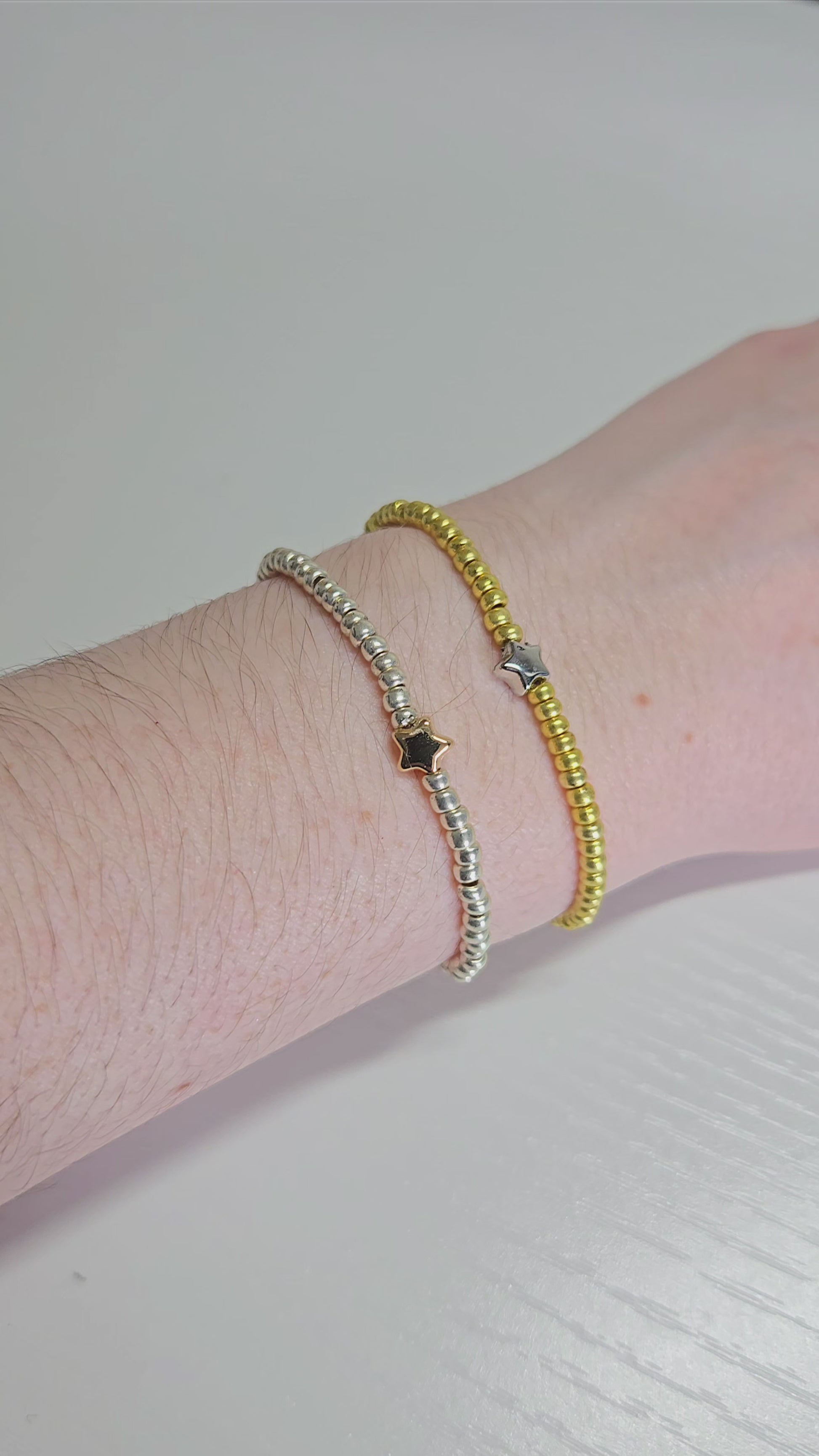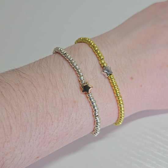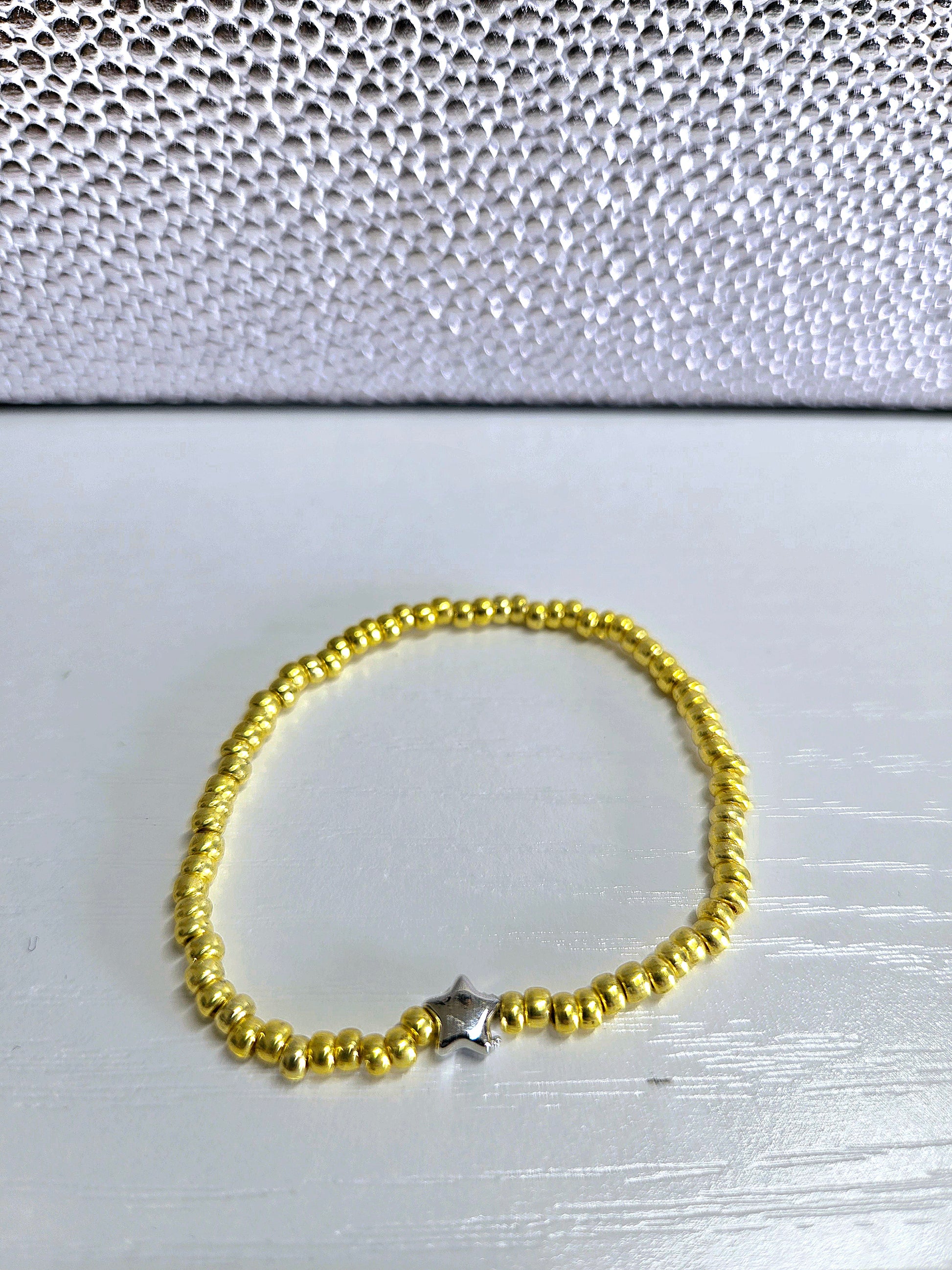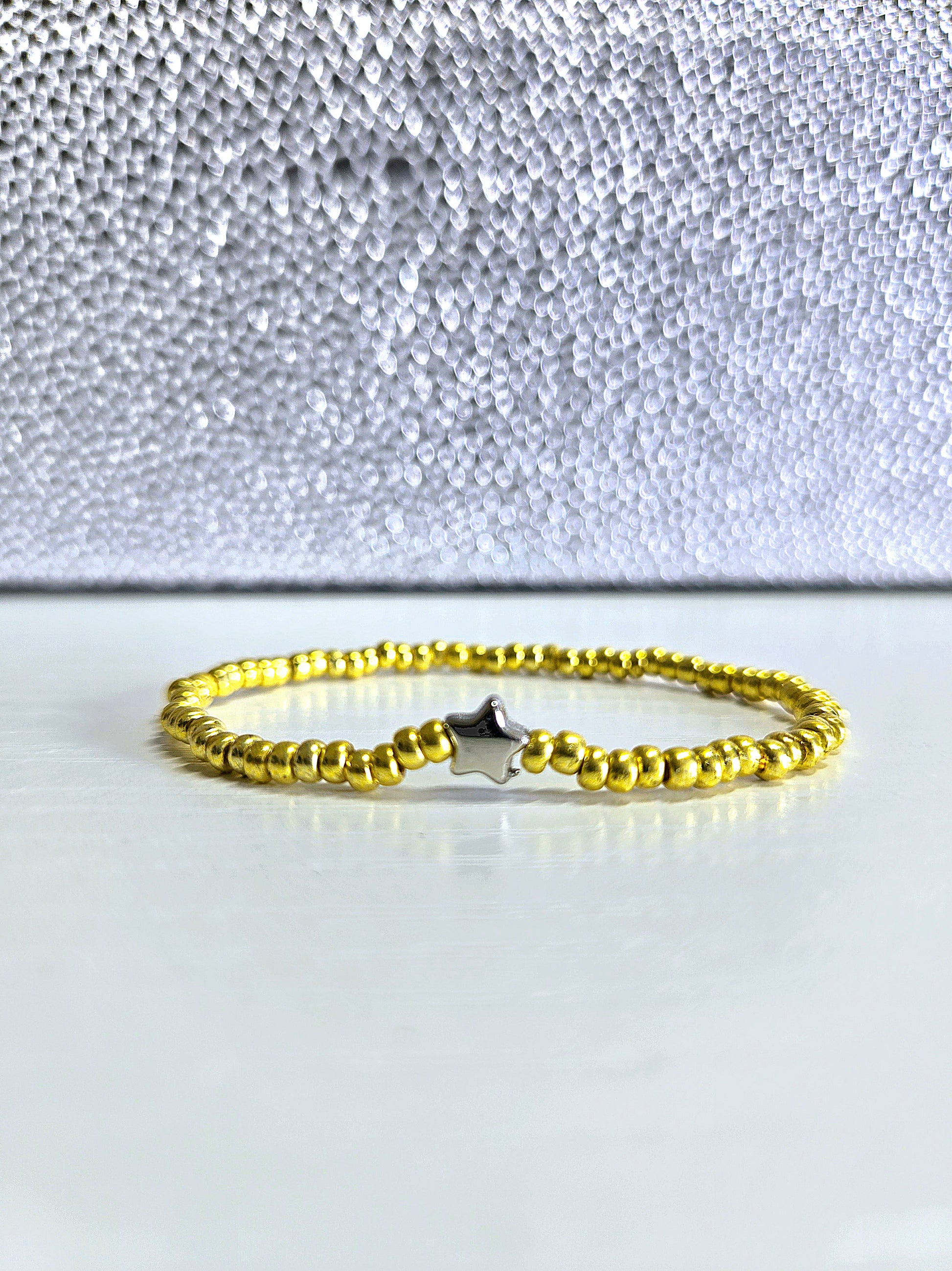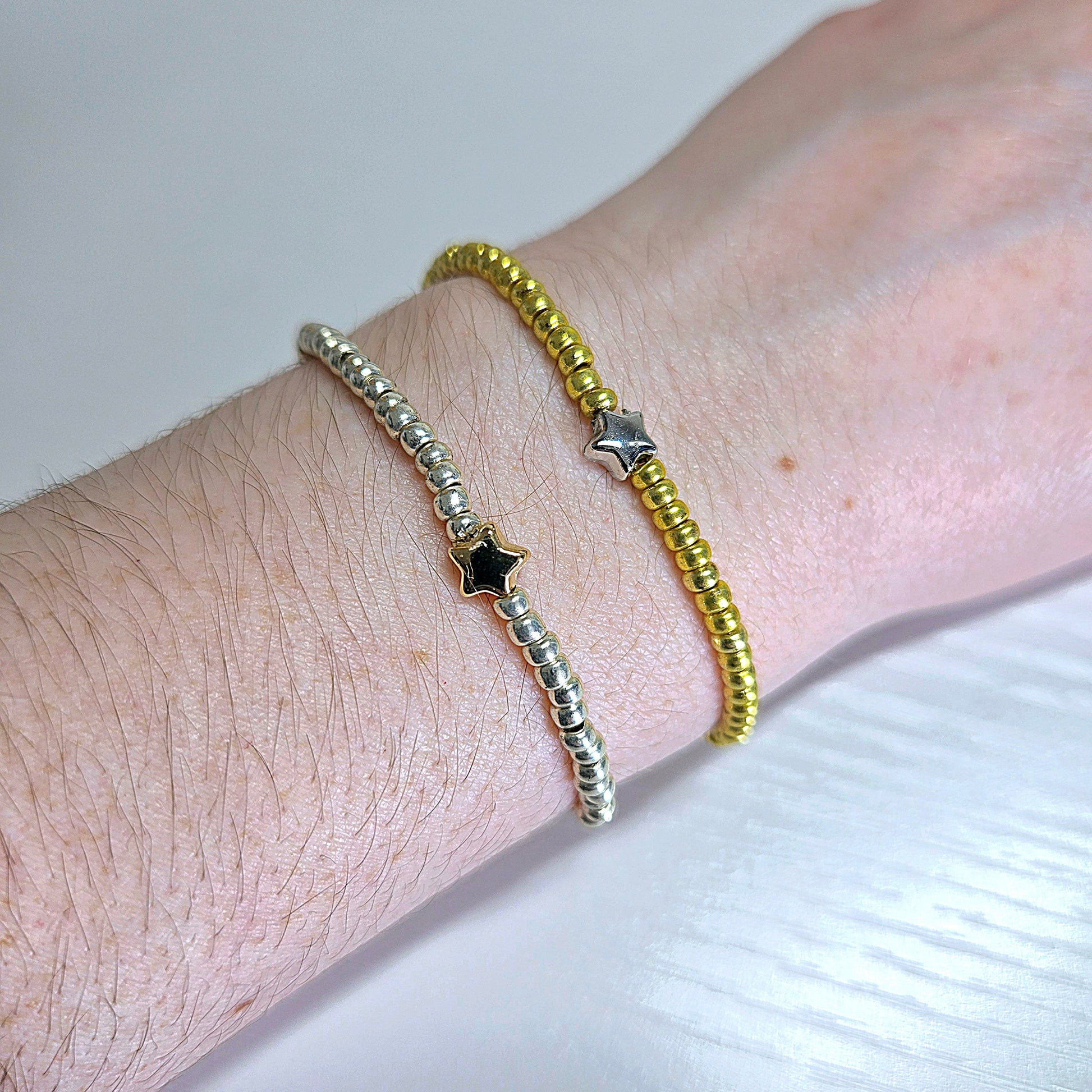 Hand made to order this super sparkly Stretchy Bracelet is made with 3mm Preciosa Crystal Seed Bead & is finished Gold off with a Gold or Silver Metal Star Charm giving it a bespoke luxury finish.