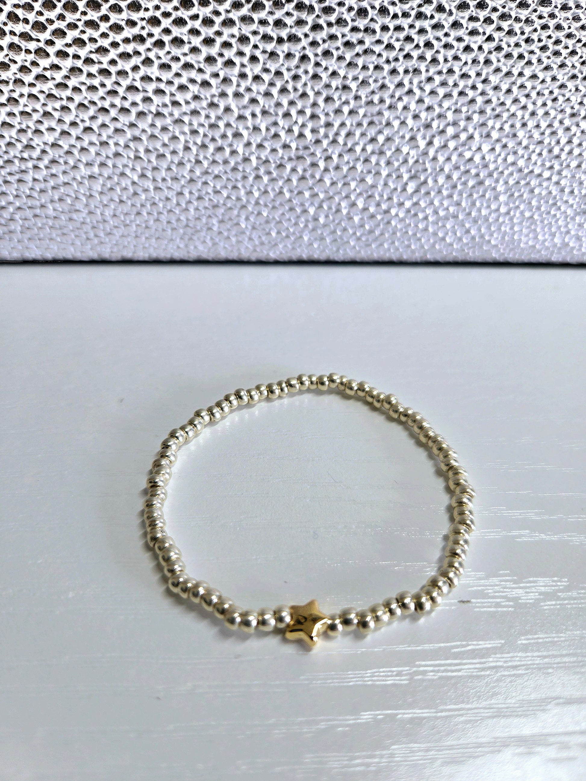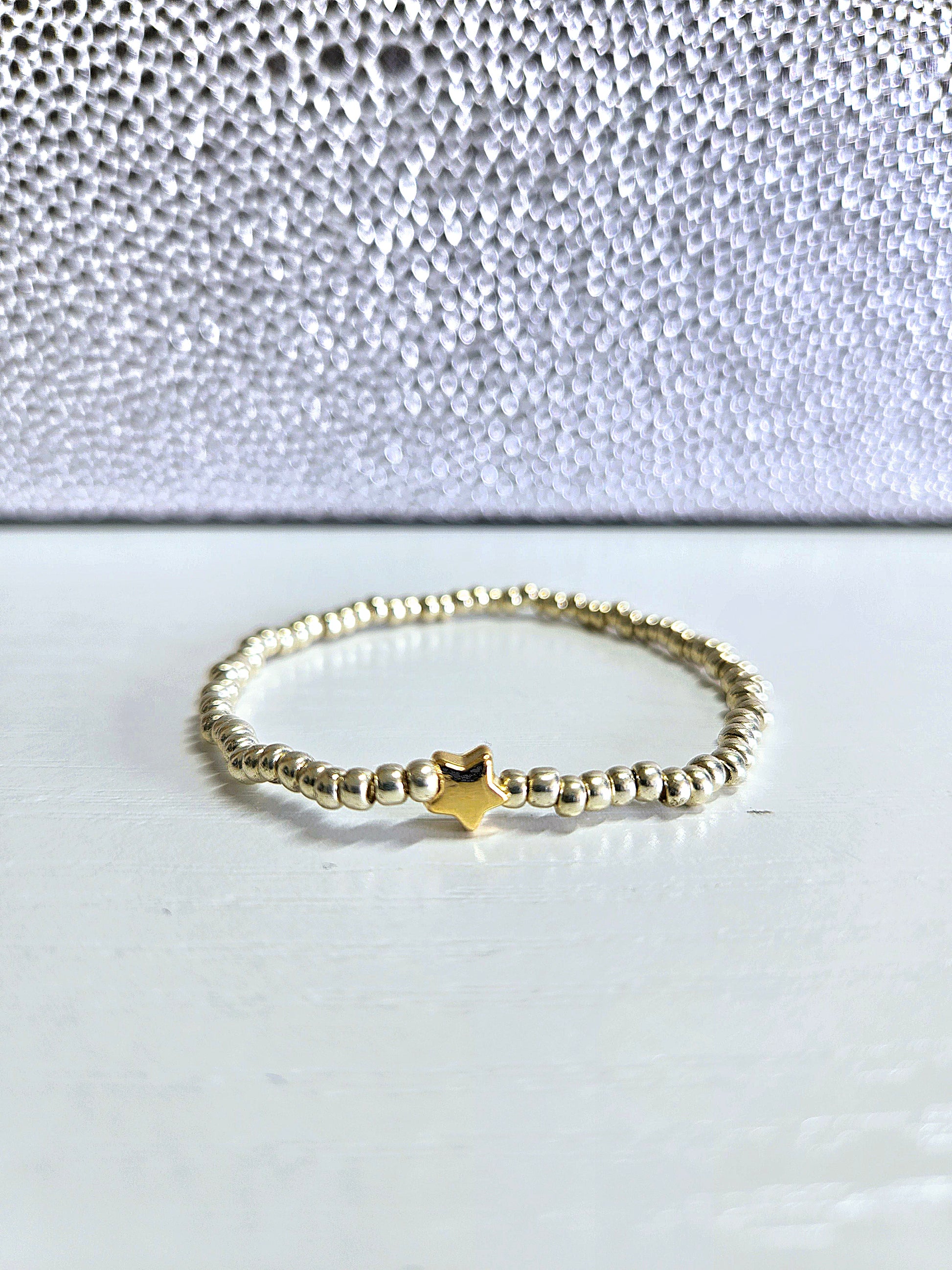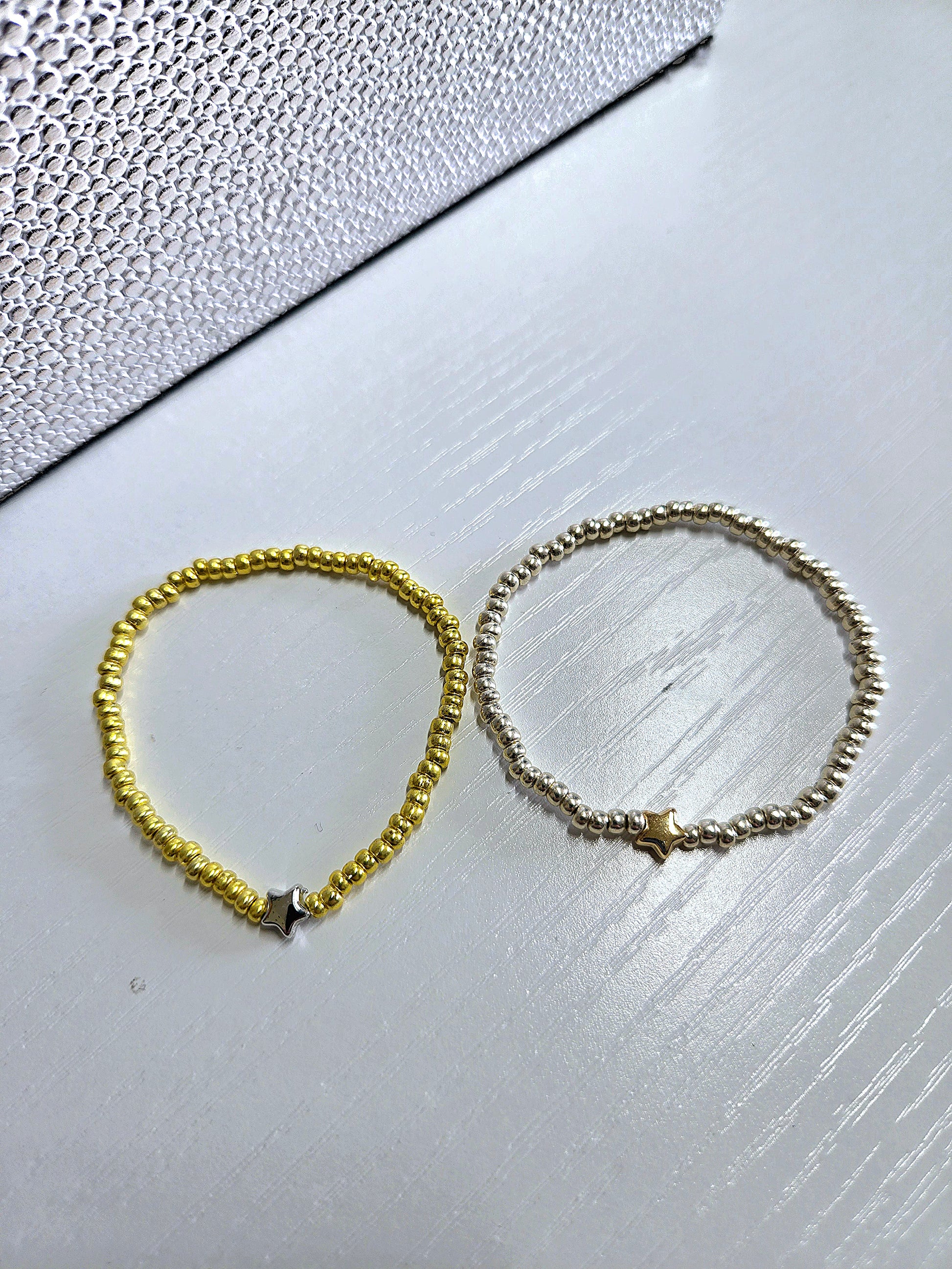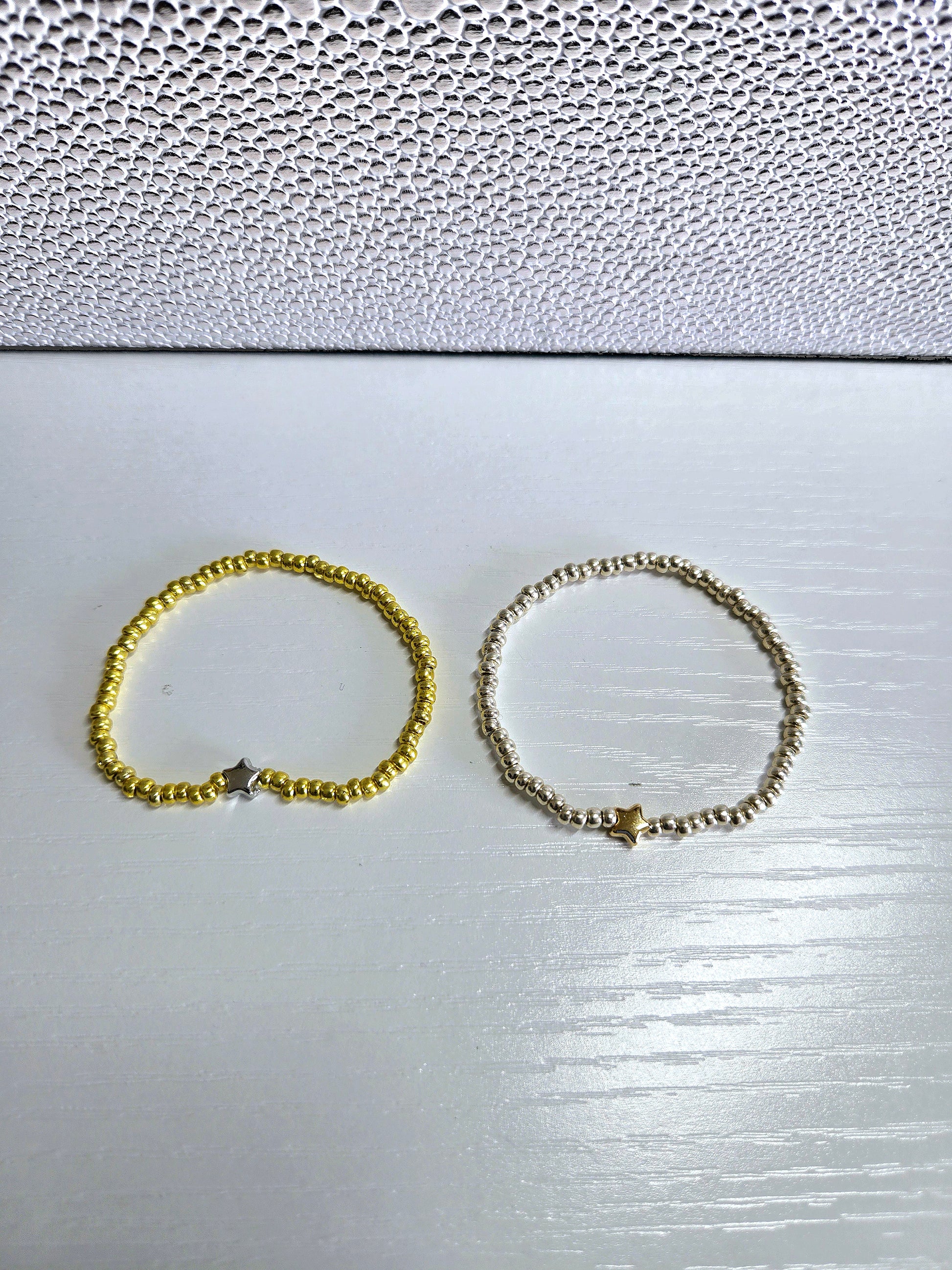 Hand made to order this super sparkly Stretchy Bracelet is made with 3mm Preciosa Crystal Seed Bead & is finished Gold off with a Gold or Silver Metal Star Charm giving it a bespoke luxury finish.