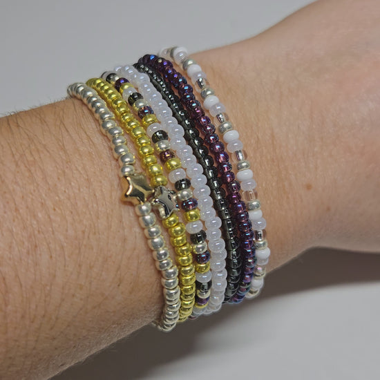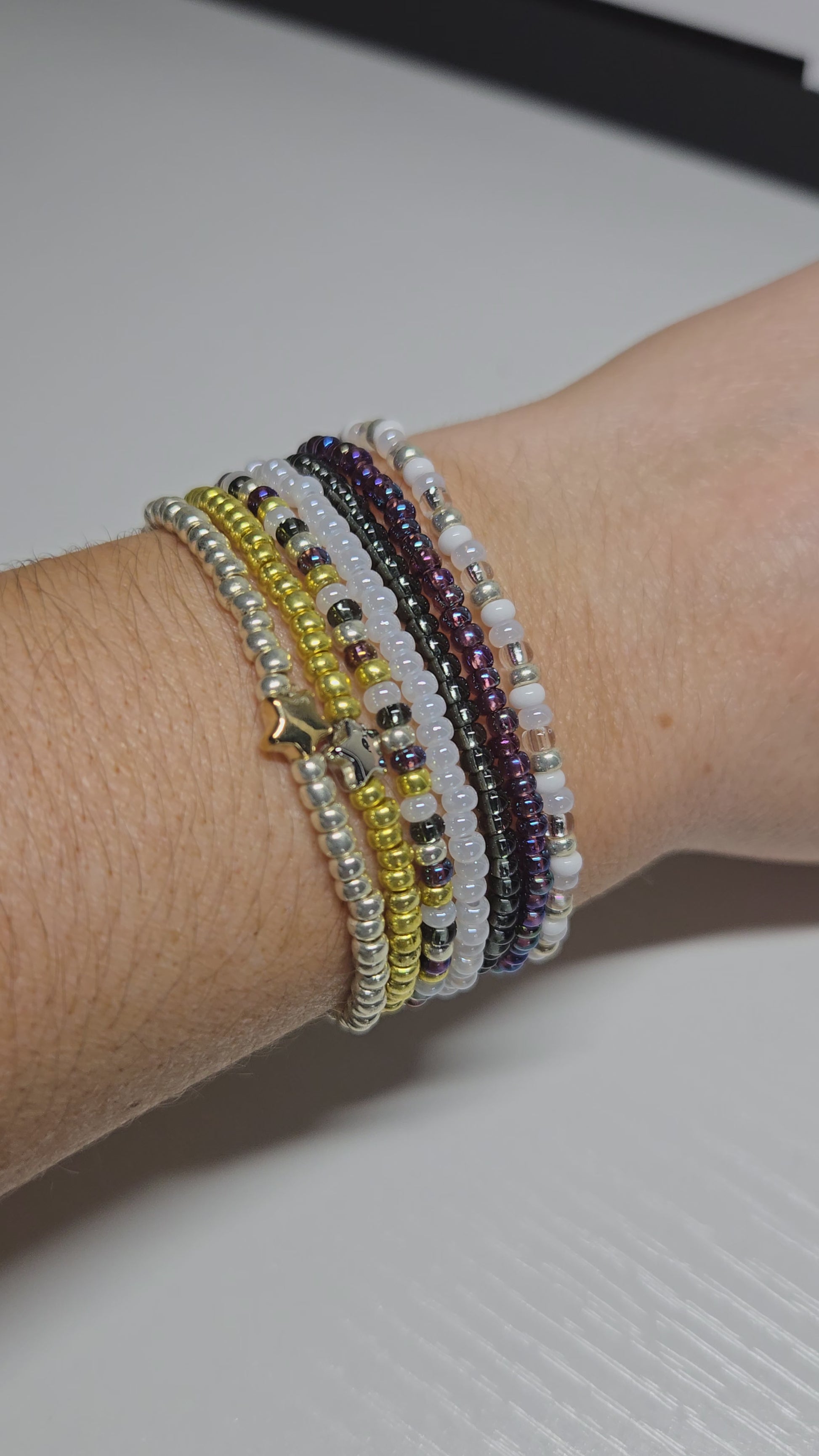 This Bracelet is available in 6 different colours- White Mix, Gold, Silver, Black, White & Purple.